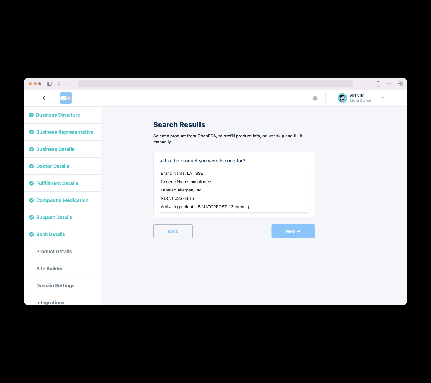 You just have to type the product name or NDC or UPC and the product details will be suggested for you to pick, once picked, the rest of the details will be automatically filled in along with product label information. You can also add the image of the product by clicking on the Image field. You can also add the variants of the product by clicking on the Add Variant button. You can also add the price of the product and the variants along with few more details.